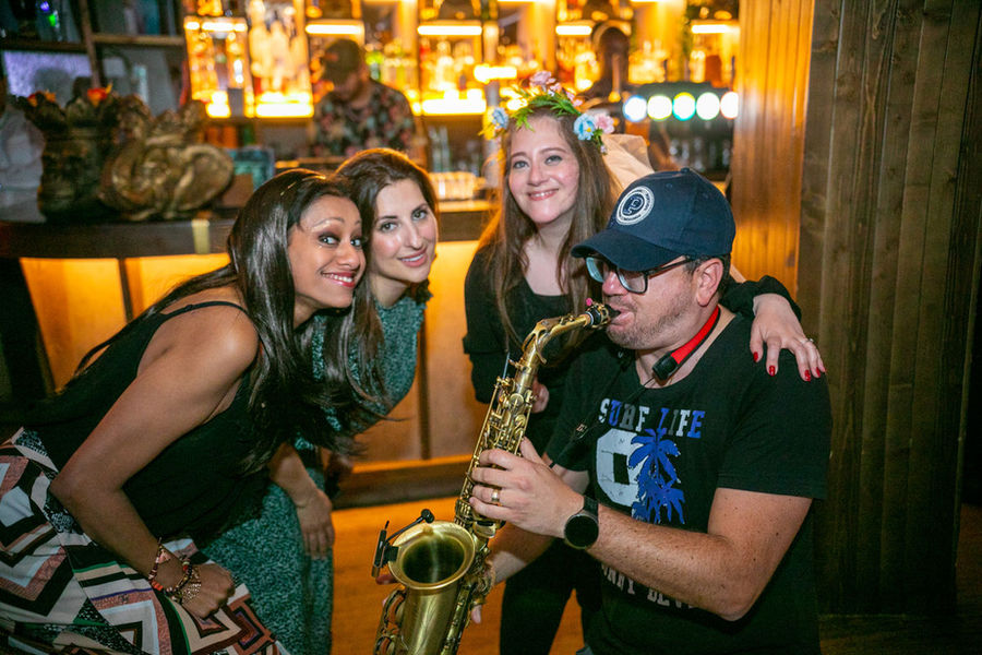 I have been playing live music for over 15 years. I was part of the vibrant L8Funk band in London, I played with Rockodiles (Rockabilly band), Amy Winehouse Italian band, Dave Matthews Project Band and many others. The sax players I get inspiration from are: the great Ray Gelato (the "Godfather of Swing" who is also my mentor - lucky me!), Leroi Moore (Dave Matthews Band), Arnett Cobb, Maceo Parker, Candy Dulfer, Boney James. And of course my fellow tenor sax player in L8 Funk, Butch Evarts and his great solos and jokes.